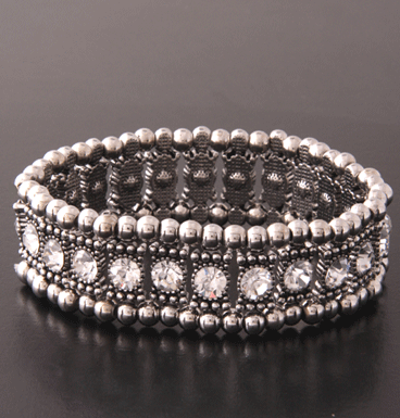 ovale kralen met blauwe bloemen afgewisseld met strasskralen